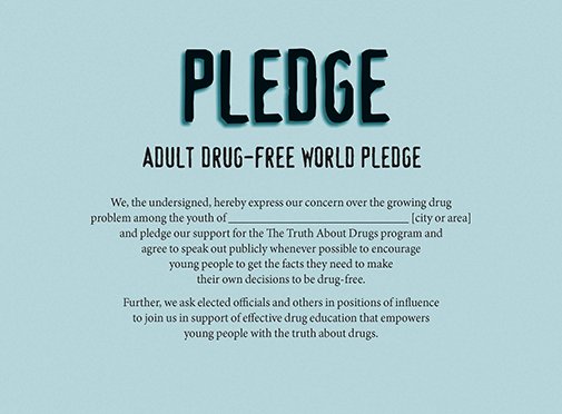 Teken de gelofte en leid de weg naar een drugsvrij leven. Werk met anderen samen om te helpen de feiten over drugs te verspreiden.