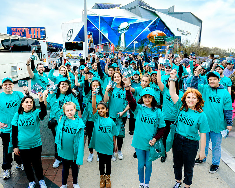 Terwijl Atlanta, Georgia, worstelt met een methamfetamine- en opiatenepidemie, geeft Drugsvrije Wereld (Drug-Free World, DFW) een ruggensteun door een half miljoen bezoekers van Super Bowl 53 te bereiken.