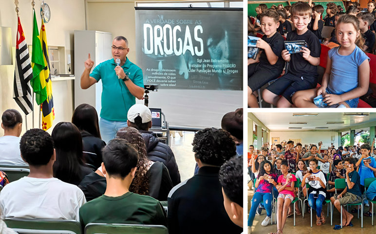 Jean Beltramello, een ervaren politieagent, geeft Feiten over Drugs-voorlichting aan jongeren in Brazilië.
